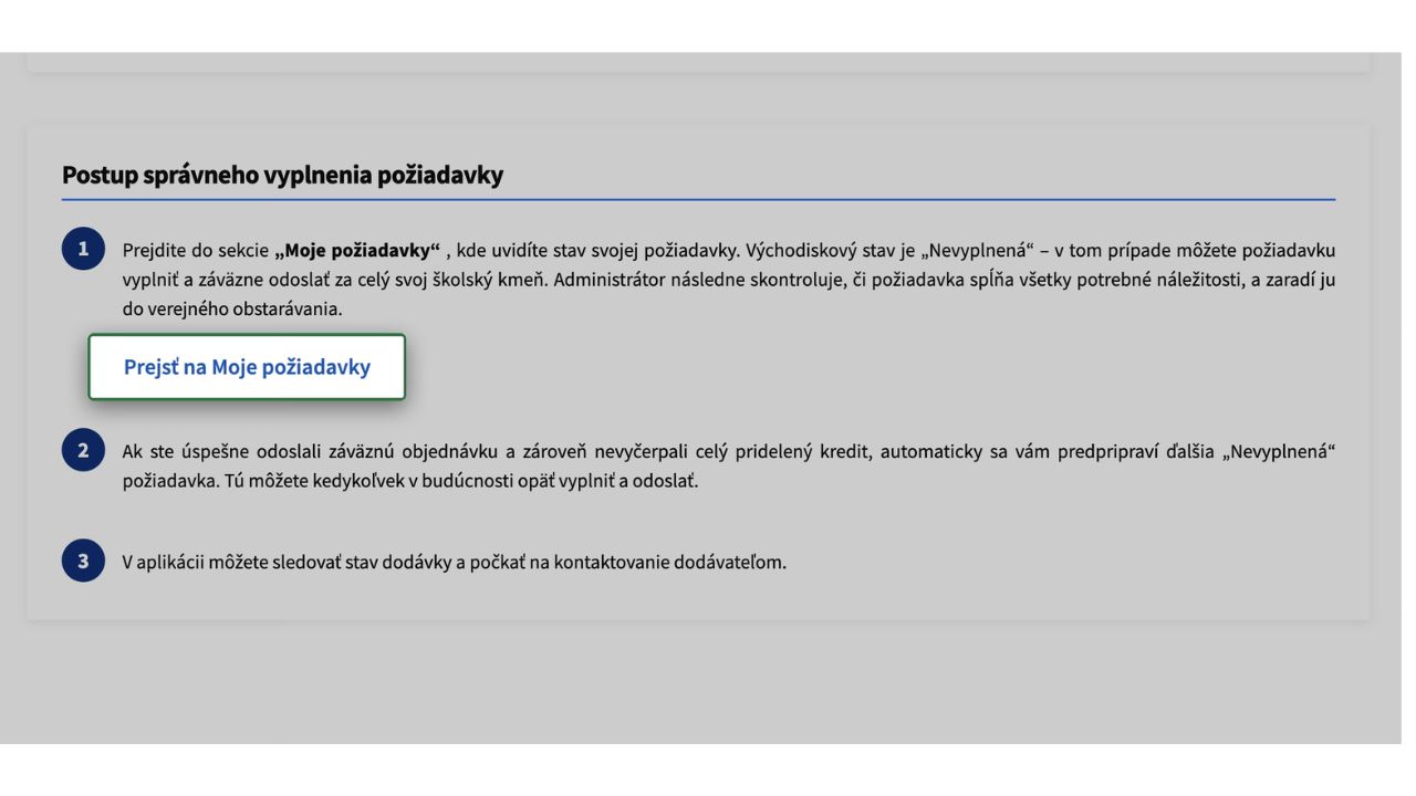 Kliknite na tlačidlo PREJSŤ NA MOJE POŽIADAVKY. Je v dolnej časti stránky “Objednávky publikácií”.